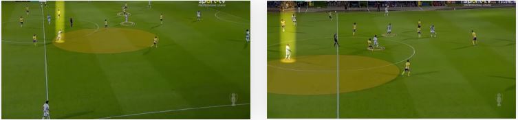 نقش آنها فقط دفاع یا پوشش انتقالها نیست. این در مورد دستکاری ساختار حریف برای ایجاد پنجرههایی برای پیشروی است. آنها با تنگ کردن و عقبنشینی در مرحلهی اول بازیسازی، هافبکهای حریف را به داخل جذب میکنند و آنها را مجبور به بستن خطوط مرکزی میکنند. با انجام این کار، آنها نیمفضاها را باز میکنند – دقیقاً جایی که دو شماره ده برای دریافت توپ بین خطوط قرار میگیرند.