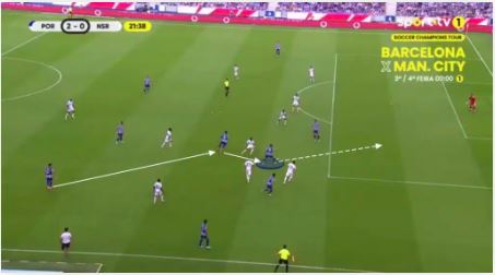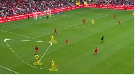 این چیدمان به جذب هافبکهای حریف کمک میکند و باعث سردرگمی در مورد اینکه چه کسی باید پرس کند – وینگر، فولبک یا هافبک میانی – میشود. این ساختاری است که اغلب در تیمهای تحت مربیگری پپ گواردیولا یا ژابی آلونسو دیده میشود، جایی که فولبک معکوس به یک رابط کلیدی در پیشروی در عرض و مرکز تبدیل میشود.