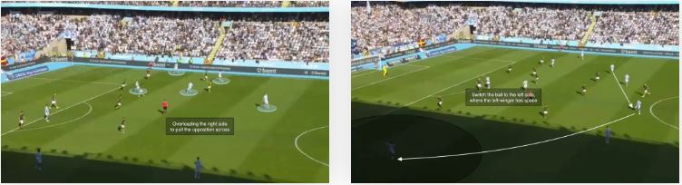 از طریق اضافه بار برای پیشروی در جناحین ترکیب شود، یا از اضافه بار برای کشاندن حریفان به آن طرف قبل از تغییر بازی به فضای تازه باز شده استفاده کند.