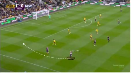 با یک بلاک به سمت توپ، سمت دورتر به طور طبیعی باز میشود. تیمهای نخبه اغلب با تغییر سریع بازی، استفاده از پاسهای مورب بلند یا گردش سریع در خط میانی، از این موضوع بهرهبرداری میکنند.