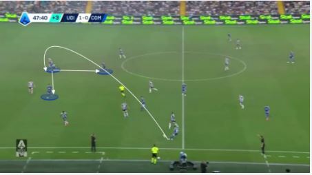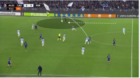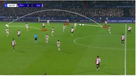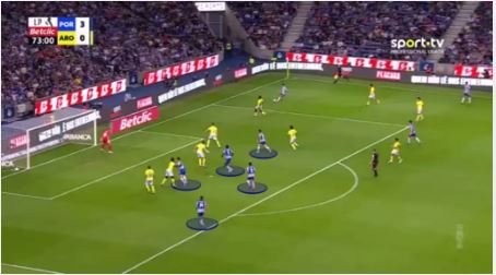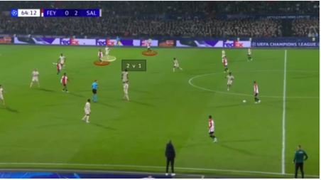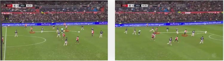 در این صورت، فول‌بک مجبور می‌شود بین بیرون آمدن برای پرس یا نگه داشتن توپ یکی را انتخاب کند.