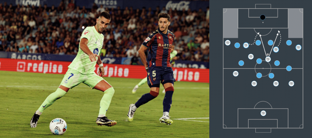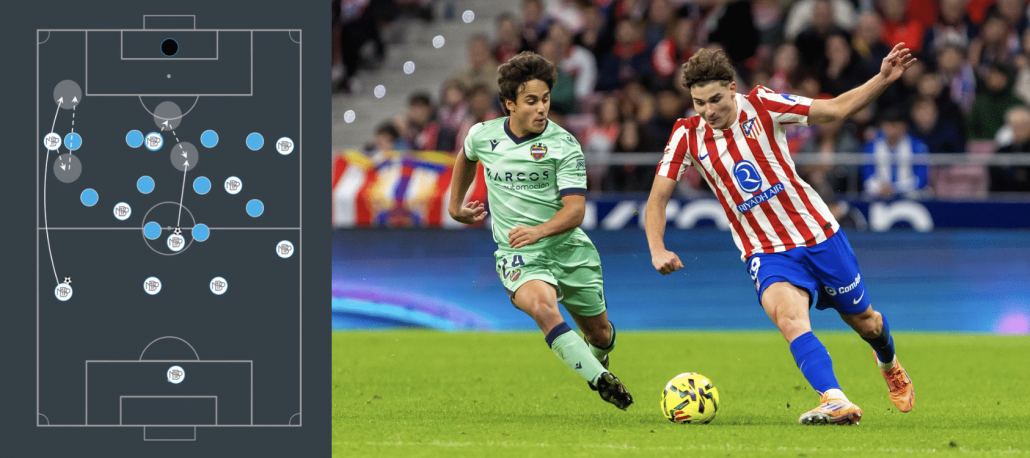 اگر مدافعان میانی فشار دفاعی کمی به حرکت وارد کنند، هافبکهای تهاجمی آزاد خواهند بود که توپ را دریافت کنند. از طرف دیگر، اگر دفاع فشار وارد کند، فضای بیشتری در پشت سر برای دویدن بازیکنان ایجاد میشود.