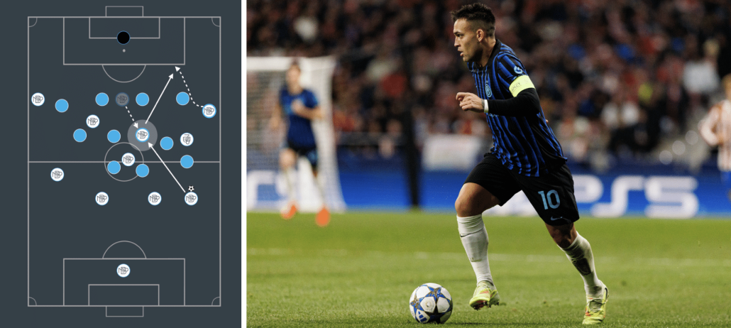 فرصت واقعی برای انجام این کار زمانی ایجاد میشود که همتیمی صاحب توپ بتواند در فضا بازی کند. حرکت باید مورب به سمت دروازه باشد. مهاجم فقط زمانی که میخواهد مدافع میانی را مهار کند، جلوی او میدود و عمداً او را به فضا میکشد، حرکتی که خیلی زود در یک اصل اساسی دیگر منعکس خواهد شد.